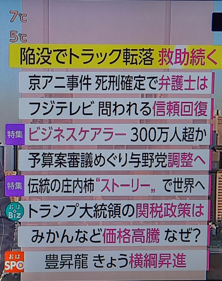 This is a picture showing a part of NHK TV news, which I saw in the morning on January 29. 2025.